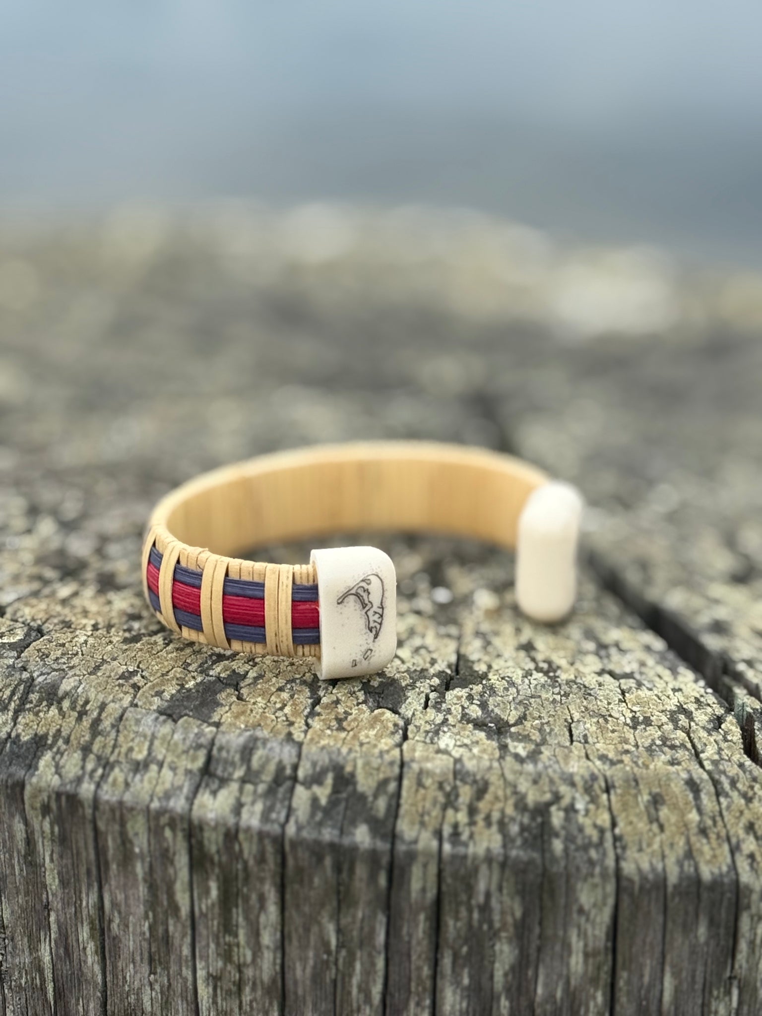 This Navy and Red Nautical Nantucket Cuff is the perfect accessory for any nautical enthusiast. With its anchor and Nantucket map detail, it adds a touch of maritime charm to your style. The 1/2” cuff is both stylish and subtle, making it a versatile addition to any outfit.